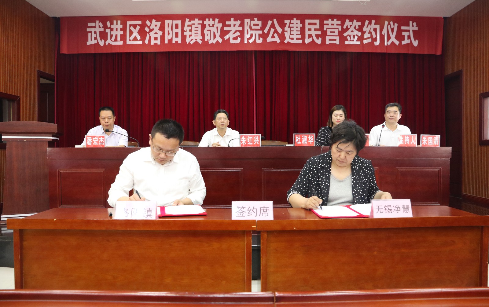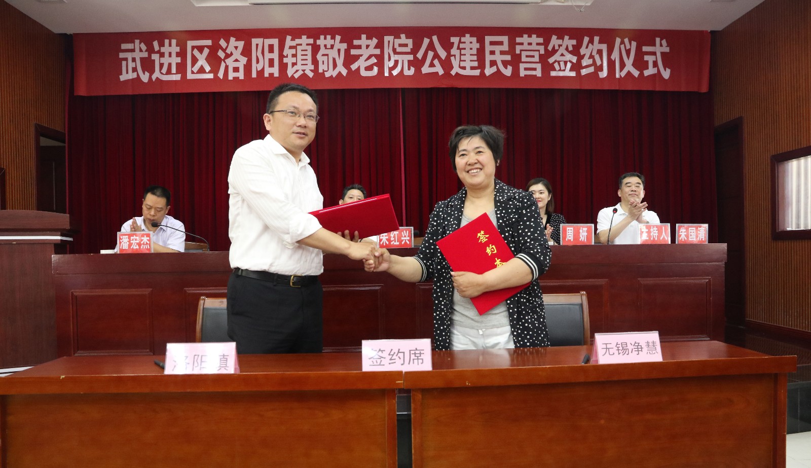 5月23日,凈慧集團與常州市洛陽鎮(zhèn)政府,在其當?shù)劓?zhèn)政府辦公園區(qū)的會議中心簽訂公建民營合作協(xié)議,洛陽鎮(zhèn)黨委書記、人大主席朱紅興,黨委副書記、鎮(zhèn)長龔新宇,黨委副書記、政協(xié)工委主任潘宏杰、凈慧養(yǎng)老服務(wù)運營管理有限公司董事長杜淑華,總經(jīng)理周妍出席簽約儀式,全體鎮(zhèn)干部、事業(yè)單位負責(zé)人、各村(社區(qū))書記參加儀式。簽約儀式由洛陽鎮(zhèn)副鎮(zhèn)長朱國清主持。