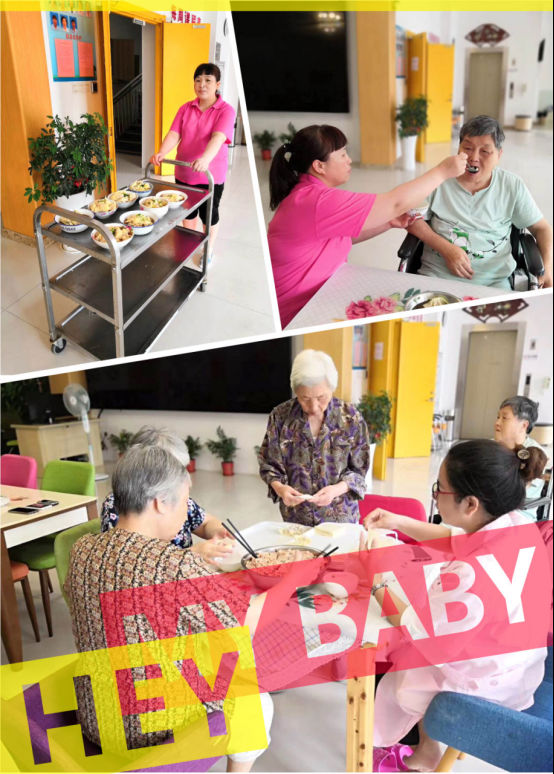 我們的阿姨親切得問道:“好吃嗎,餡的味道怎么樣?”老人們都還來不及嚼完口中的餛飩,便連聲應(yīng)道:“好吃好吃,你們做得很好吃,謝謝你們!”